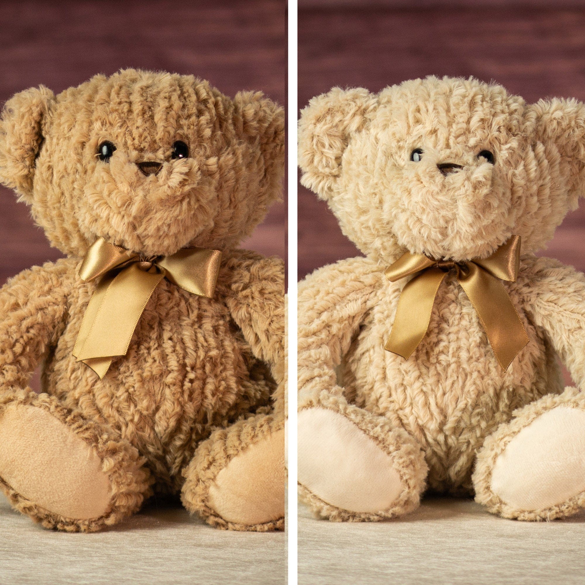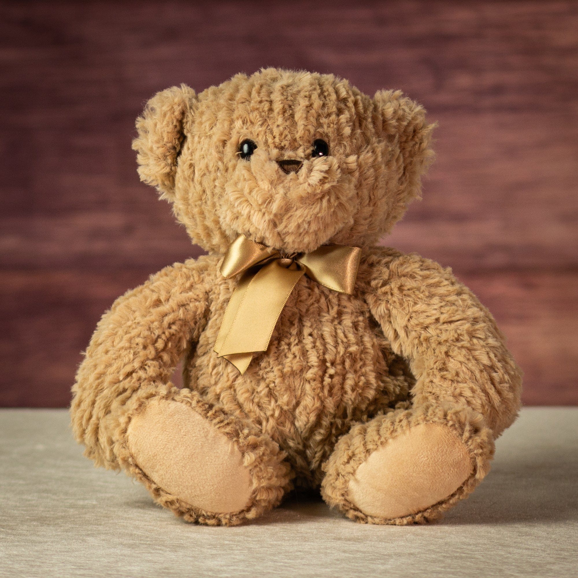 Soft and traditional with a vintage look, these 10.5" teddy bears come in a pack of 6, with 3 each of warm brown and light beige. The loop-textured plush gives them an old-fashioned charm, while the gold satin ribbon adds a gentle touch of elegance. Each bear sits upright with stitched paw pad details and a timeless silhouette��ideal for gift shops, sympathy arrangements, or classic displays that call for a softer, heirloom-style feel.