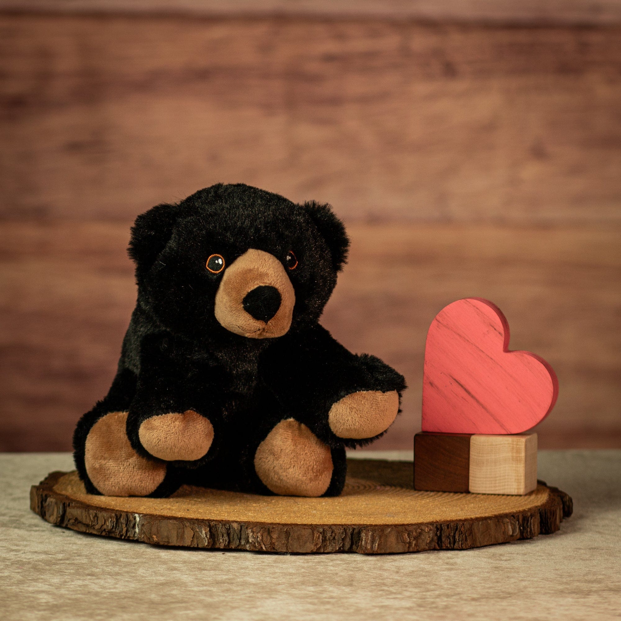 This 10" sitting black bear features rich dark fur with tan snout and paws, plus a wide, rounded shape that sits well on shelves. Its warm, classic look makes it a great fit for rustic displays, lodge gift shops, or outdoor-themed gifting. Soft, sturdy, and ready to display.